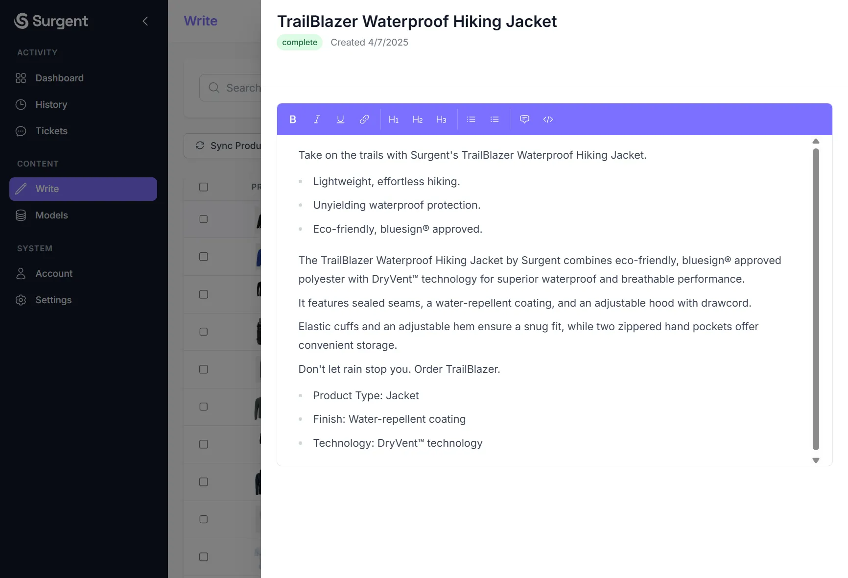 The Best Product Descriptions are made with Surgent